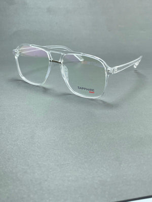 Clear frame with a sleek metal bridge, square shape with rounded corners, and a touch of sophistication.